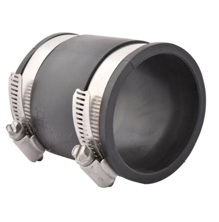 Acople para drenaje de Plomer, su uso da firmeza y seguridad a las uniones de 2 pulgadas de diámetro para tuberías sanitarias, es adecuado para materiales como PVC a fierro fundido, barro, asbesto, concreto y cobre.