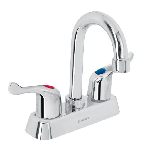 Mezcladora tipo Bar Medida: 10cm C/Chapetón Pico Abatible Acabado: Cromo Cartucho cerámico; cierre 90° Maneral: Sena